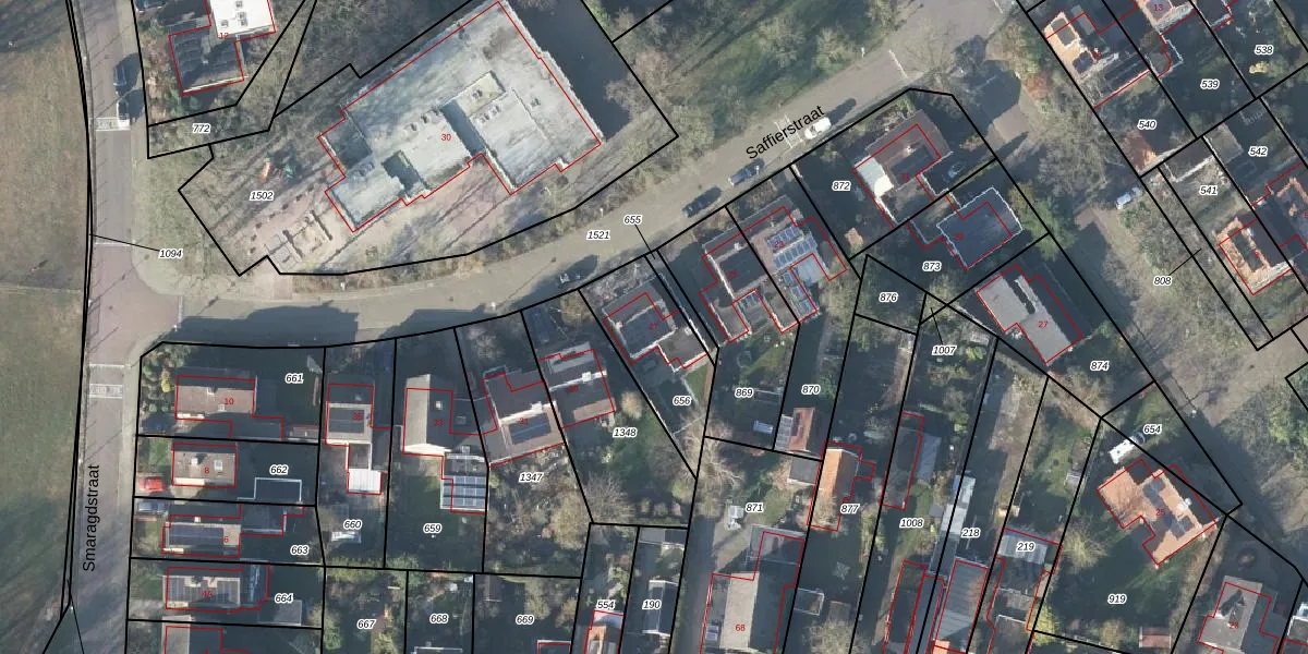 Het perceel waarop Saffierstraat 27 staat heeft een oppervlakte van 318 m². Dit is een groot perceel. De perceeloppervlakte wordt geregistreerd door het Kadaster. Gedetailleerde informatie over de maten van dit perceel kunt u vinden in het rapport Kadastrale kaart met maatvoering van Saffierstraat 27.