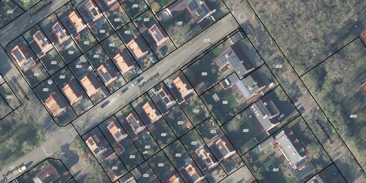 Het perceel waarop Saffierstraat 5 staat heeft een oppervlakte van 366 m². Dit is een groot perceel. De perceeloppervlakte wordt geregistreerd door het Kadaster. Gedetailleerde informatie over de maten van dit perceel kunt u vinden in het rapport Kadastrale kaart met maatvoering van Saffierstraat 5.