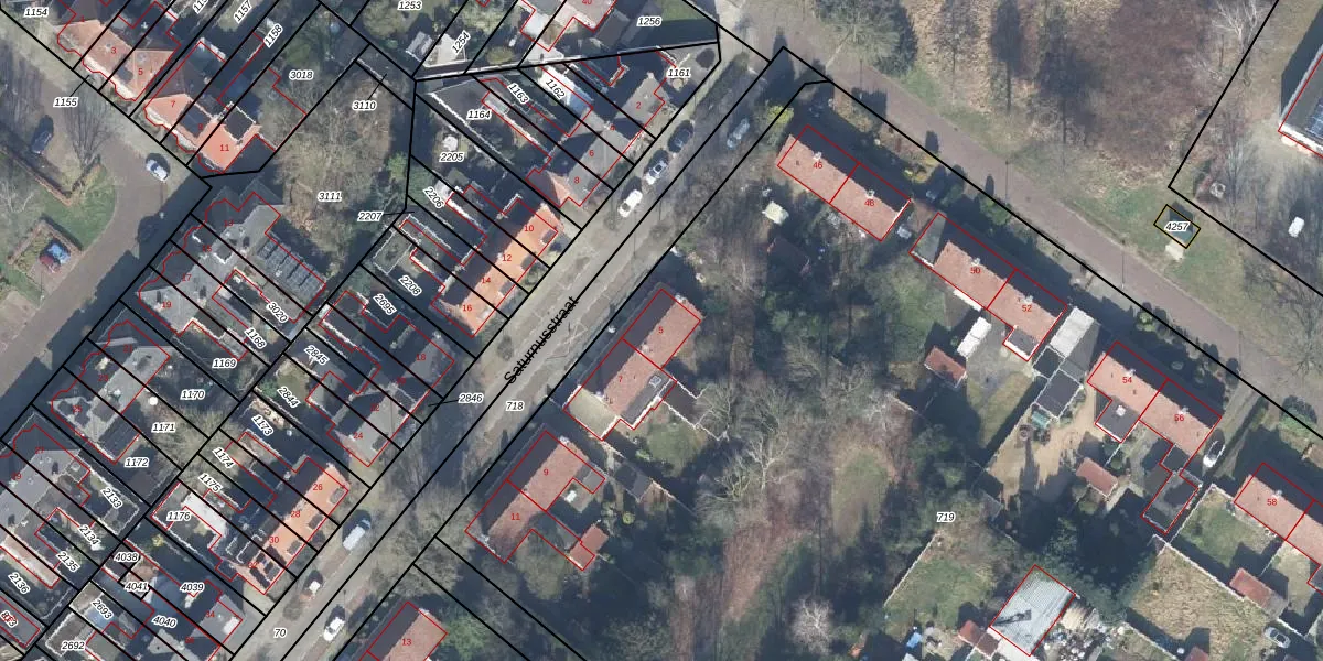 Het perceel waarop Saturnusstraat 5 staat heeft een oppervlakte van 1,1 ha. Dit is een zeer groot perceel. De perceeloppervlakte wordt geregistreerd door het Kadaster. Gedetailleerde informatie over de maten van dit perceel kunt u vinden in het rapport Kadastrale kaart met maatvoering van Saturnusstraat 5.