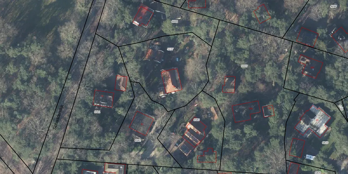 Het perceel waarop Schaddendijk 75 staat heeft een oppervlakte van 1664 m². Dit is een zeer groot perceel. De perceeloppervlakte wordt geregistreerd door het Kadaster. Gedetailleerde informatie over de maten van dit perceel kunt u vinden in het rapport Kadastrale kaart met maatvoering van Schaddendijk 75.
