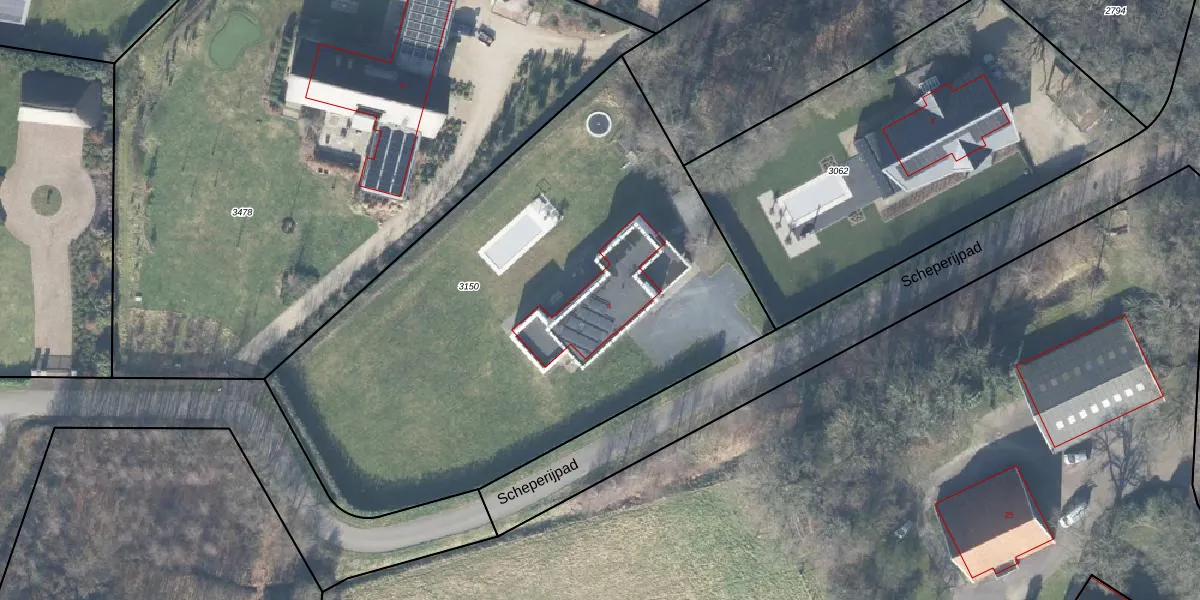 Het perceel waarop Scheperijpad 4 staat heeft een oppervlakte van 3285 m². Dit is een zeer groot perceel. De perceeloppervlakte wordt geregistreerd door het Kadaster. Gedetailleerde informatie over de maten van dit perceel kunt u vinden in het rapport Kadastrale kaart met maatvoering van Scheperijpad 4.