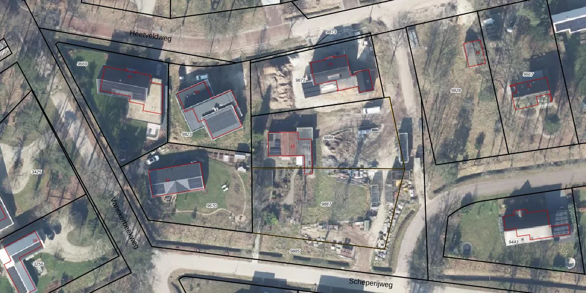 Het perceel waarop Scheperijweg 15 staat heeft een oppervlakte van 1009 m². Dit is een zeer groot perceel. De perceeloppervlakte wordt geregistreerd door het Kadaster. Gedetailleerde informatie over de maten van dit perceel kunt u vinden in het rapport Kadastrale kaart met maatvoering van Scheperijweg 15.