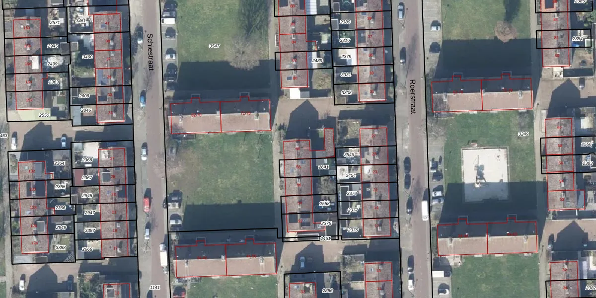 Het perceel waarop Schiestraat 60 staat heeft een oppervlakte van 6142 m². Dit is een zeer groot perceel. De perceeloppervlakte wordt geregistreerd door het Kadaster. Gedetailleerde informatie over de maten van dit perceel kunt u vinden in het rapport Kadastrale kaart met maatvoering van Schiestraat 60.