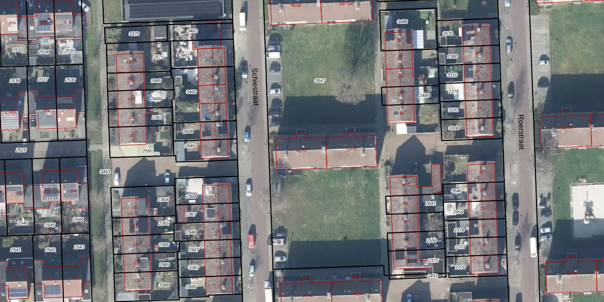 Het perceel waarop Schiestraat 66 staat heeft een oppervlakte van 6142 m². Dit is een zeer groot perceel. De perceeloppervlakte wordt geregistreerd door het Kadaster. Gedetailleerde informatie over de maten van dit perceel kunt u vinden in het rapport Kadastrale kaart met maatvoering van Schiestraat 66.