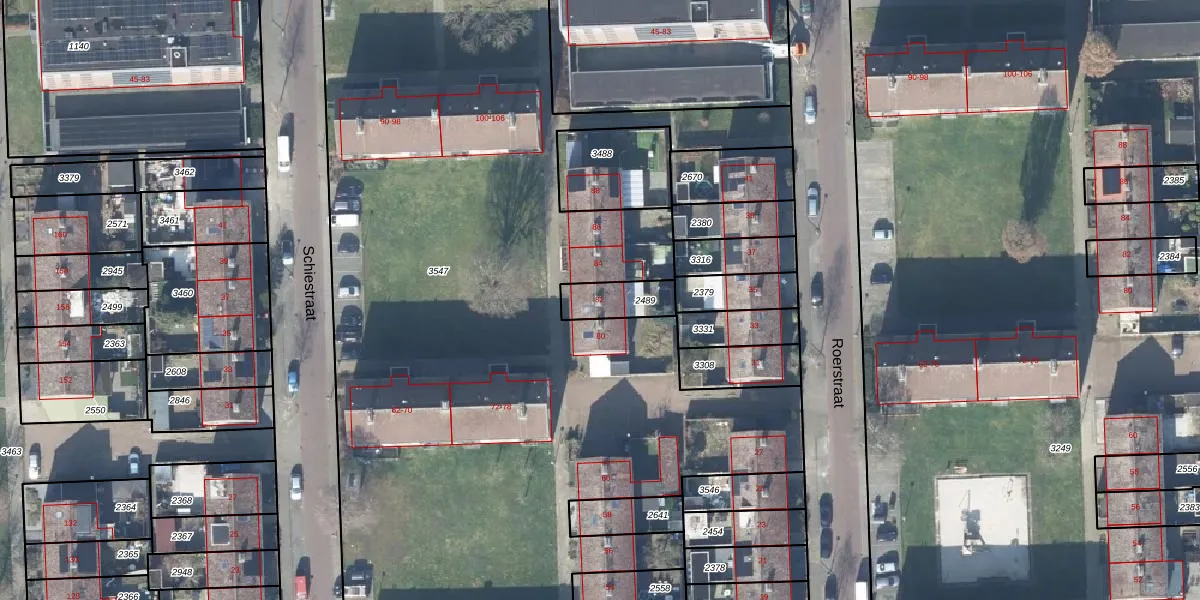 Gebruik de zoekbalk of klik op een perceel voor informatie over de adressen binnen dit perceel.
