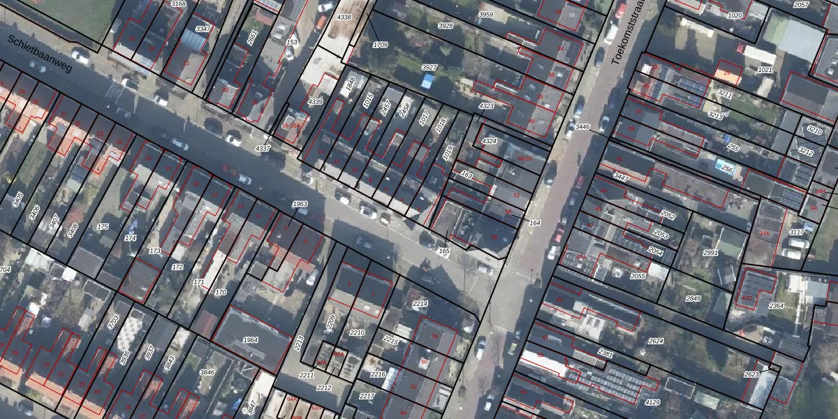 Gebruik de zoekbalk of klik op een perceel voor informatie over de adressen binnen dit perceel.