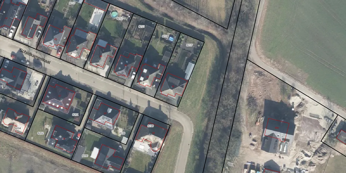 Het perceel waarop Schildkampstraat 30 staat heeft een oppervlakte van 598 m². Dit is een groot perceel. De perceeloppervlakte wordt geregistreerd door het Kadaster. Gedetailleerde informatie over de maten van dit perceel kunt u vinden in het rapport Kadastrale kaart met maatvoering van Schildkampstraat 30.