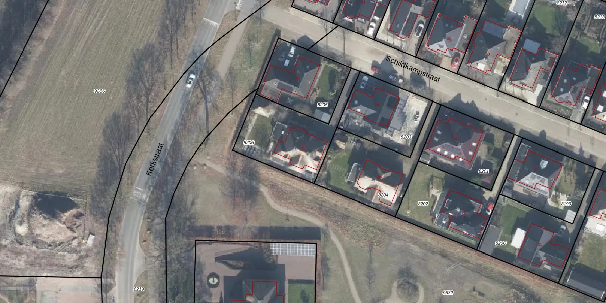 Het perceel waarop Schildkampstraat 33 staat heeft een oppervlakte van 640 m². Dit is een groot perceel. De perceeloppervlakte wordt geregistreerd door het Kadaster. Gedetailleerde informatie over de maten van dit perceel kunt u vinden in het rapport Kadastrale kaart met maatvoering van Schildkampstraat 33.