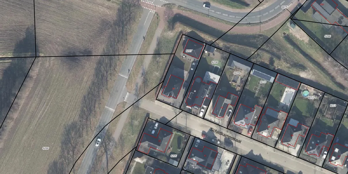 Het perceel waarop Schildkampstraat 46 staat heeft een oppervlakte van 598 m². Dit is een groot perceel. De perceeloppervlakte wordt geregistreerd door het Kadaster. Gedetailleerde informatie over de maten van dit perceel kunt u vinden in het rapport Kadastrale kaart met maatvoering van Schildkampstraat 46.