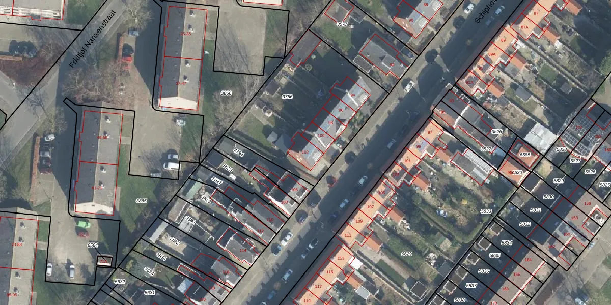 Het perceel waarop Schipholtstraat 102 staat heeft een oppervlakte van 1430 m². Dit is een zeer groot perceel. De perceeloppervlakte wordt geregistreerd door het Kadaster. Gedetailleerde informatie over de maten van dit perceel kunt u vinden in het rapport Kadastrale kaart met maatvoering van Schipholtstraat 102.