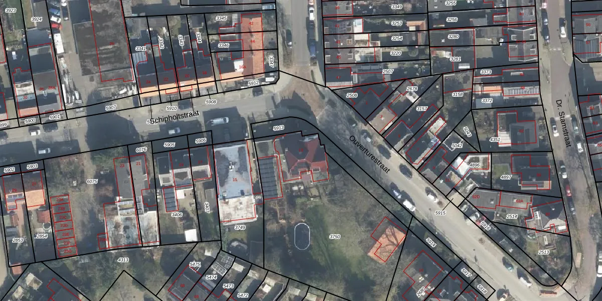 Het perceel waarop Schipholtstraat 13 staat heeft een oppervlakte van 1956 m². Dit is een zeer groot perceel. De perceeloppervlakte wordt geregistreerd door het Kadaster. Gedetailleerde informatie over de maten van dit perceel kunt u vinden in het rapport Kadastrale kaart met maatvoering van Schipholtstraat 13.
