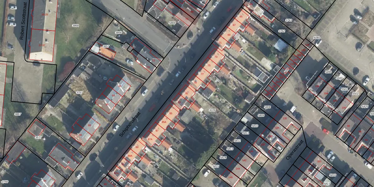 Het perceel waarop Schipholtstraat 81 staat heeft een oppervlakte van 4312 m². Dit is een zeer groot perceel. De perceeloppervlakte wordt geregistreerd door het Kadaster. Gedetailleerde informatie over de maten van dit perceel kunt u vinden in het rapport Kadastrale kaart met maatvoering van Schipholtstraat 81.