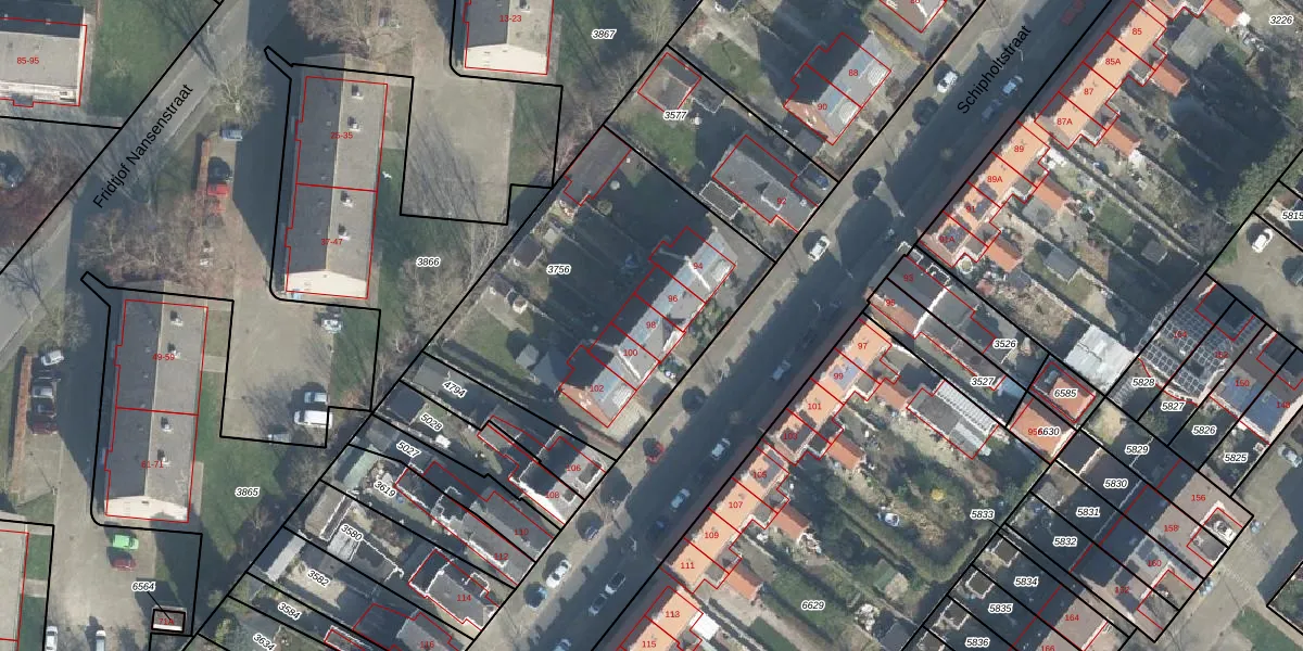 Het perceel waarop Schipholtstraat 98 staat heeft een oppervlakte van 1430 m². Dit is een zeer groot perceel. De perceeloppervlakte wordt geregistreerd door het Kadaster. Gedetailleerde informatie over de maten van dit perceel kunt u vinden in het rapport Kadastrale kaart met maatvoering van Schipholtstraat 98.