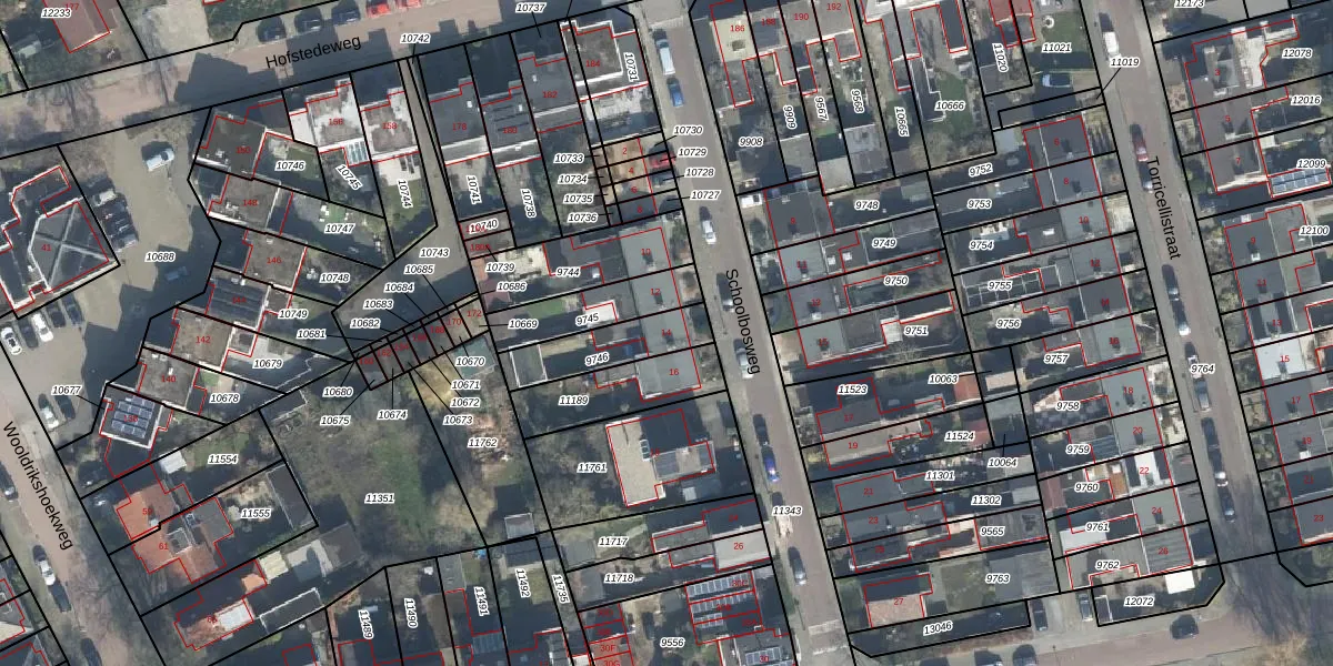 Het perceel waarop Schoolbosweg 14 staat heeft een oppervlakte van 196 m². Dit is een middelgroot perceel. De perceeloppervlakte wordt geregistreerd door het Kadaster. Gedetailleerde informatie over de maten van dit perceel kunt u vinden in het rapport Kadastrale kaart met maatvoering van Schoolbosweg 14.