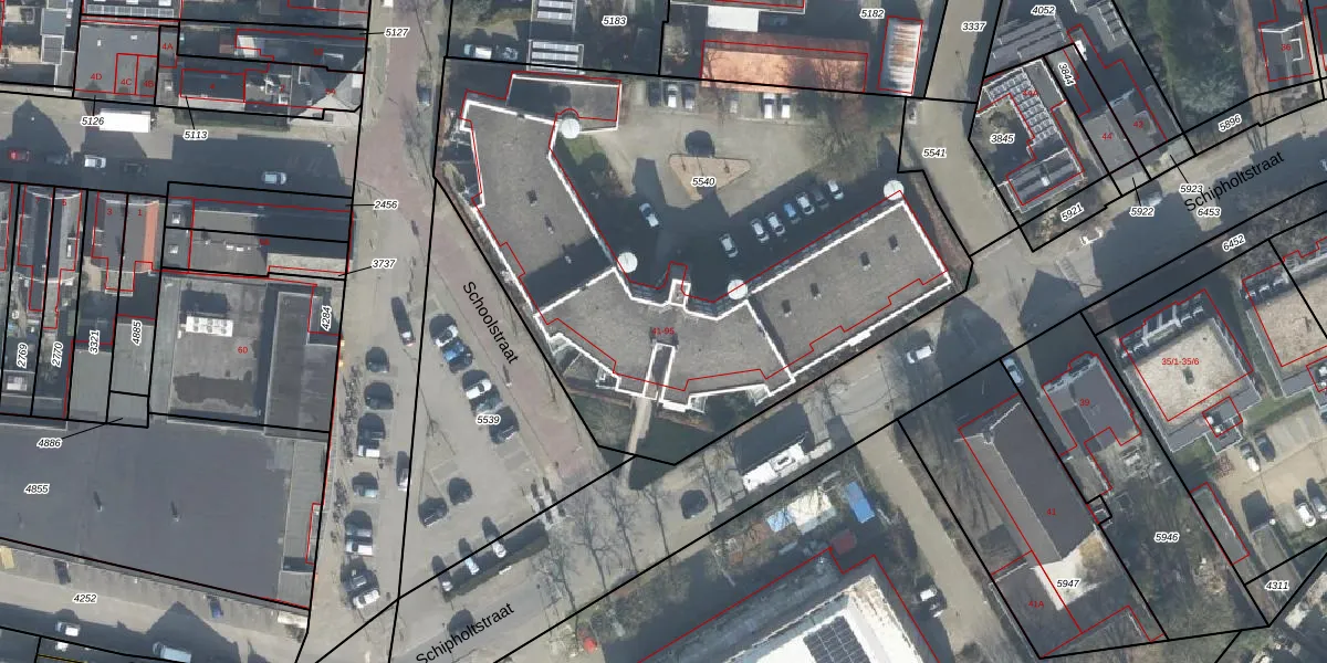 Het perceel waarop Schoolstraat 51 staat heeft een oppervlakte van 3332 m². Dit is een zeer groot perceel. De perceeloppervlakte wordt geregistreerd door het Kadaster. Gedetailleerde informatie over de maten van dit perceel kunt u vinden in het rapport Kadastrale kaart met maatvoering van Schoolstraat 51.