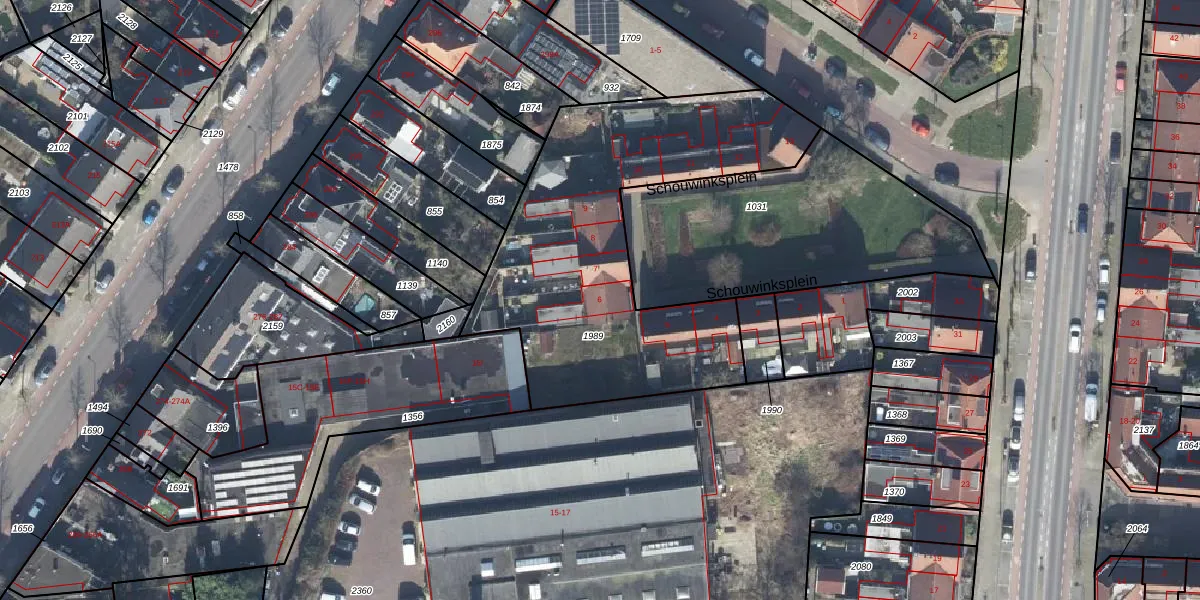 Schouwinksplein 6 is gelegen op kadastraal perceel ESD00M1989. Deze kadastrale aanduiding is uniek en wordt gebruikt door het Kadaster om eigendomsrechten en andere zakelijke rechten vast te leggen. Het perceel maakt onderdeel uit van de kadastrale gemeente Enschede.