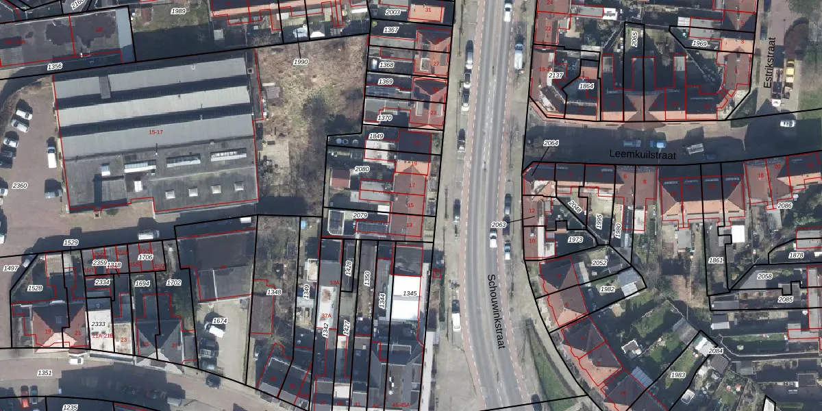 Het perceel waarop Schouwinkstraat 15 staat heeft een oppervlakte van 425 m². Dit is een groot perceel. De perceeloppervlakte wordt geregistreerd door het Kadaster. Gedetailleerde informatie over de maten van dit perceel kunt u vinden in het rapport Kadastrale kaart met maatvoering van Schouwinkstraat 15.