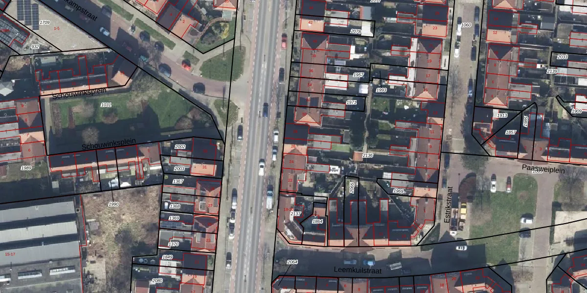 Het perceel waarop Schouwinkstraat 26 staat heeft een oppervlakte van 2373 m². Dit is een zeer groot perceel. De perceeloppervlakte wordt geregistreerd door het Kadaster. Gedetailleerde informatie over de maten van dit perceel kunt u vinden in het rapport Kadastrale kaart met maatvoering van Schouwinkstraat 26.