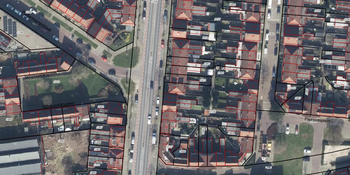 Het perceel waarop Schouwinkstraat 30 staat heeft een oppervlakte van 2373 m². Dit is een zeer groot perceel. De perceeloppervlakte wordt geregistreerd door het Kadaster. Gedetailleerde informatie over de maten van dit perceel kunt u vinden in het rapport Kadastrale kaart met maatvoering van Schouwinkstraat 30.