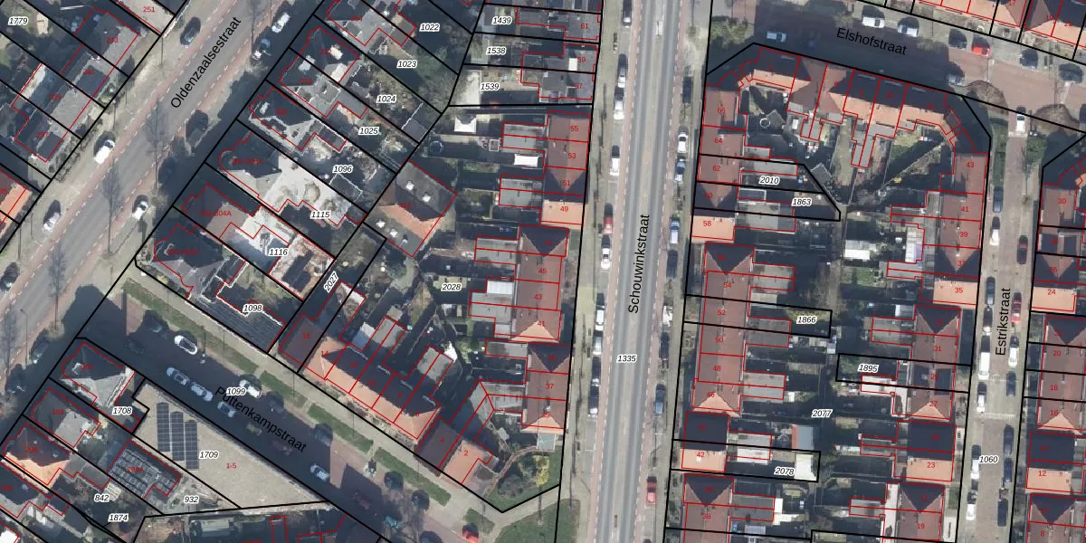 Het perceel waarop Schouwinkstraat 45 staat heeft een oppervlakte van 2660 m². Dit is een zeer groot perceel. De perceeloppervlakte wordt geregistreerd door het Kadaster. Gedetailleerde informatie over de maten van dit perceel kunt u vinden in het rapport Kadastrale kaart met maatvoering van Schouwinkstraat 45.