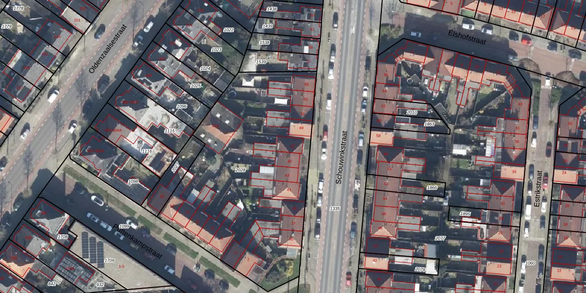 Het perceel waarop Schouwinkstraat 47 staat heeft een oppervlakte van 2660 m². Dit is een zeer groot perceel. De perceeloppervlakte wordt geregistreerd door het Kadaster. Gedetailleerde informatie over de maten van dit perceel kunt u vinden in het rapport Kadastrale kaart met maatvoering van Schouwinkstraat 47.