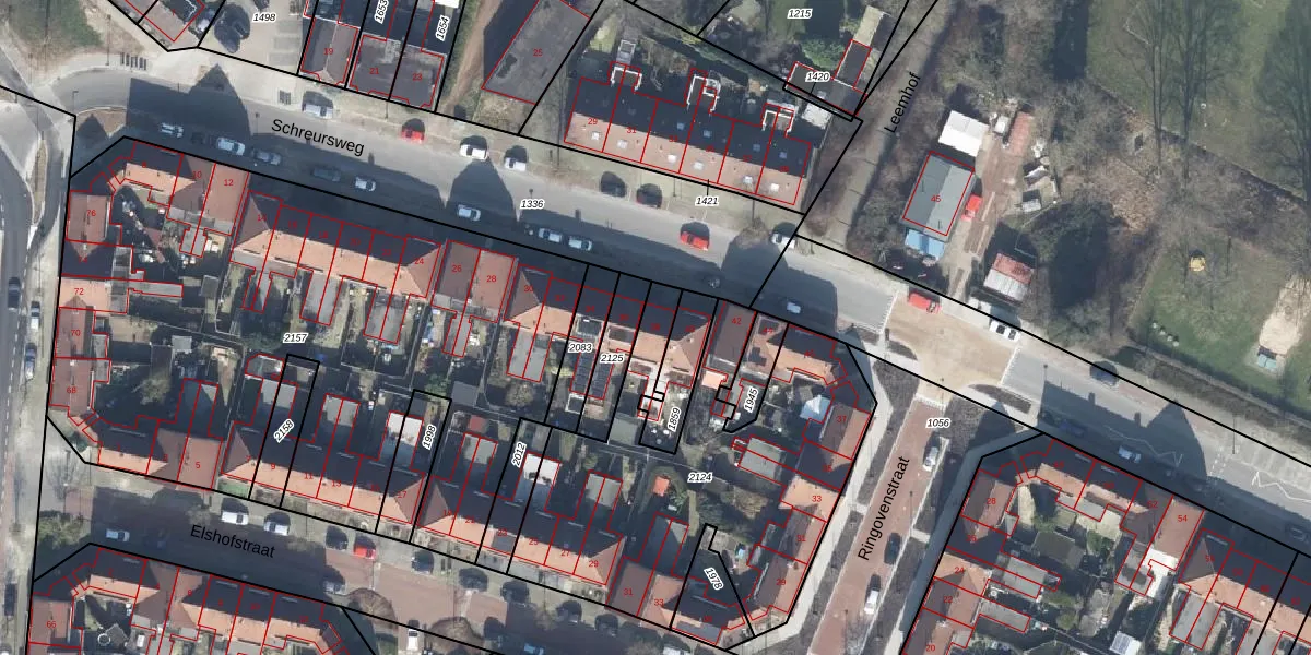 Het perceel waarop Schreursweg 38 staat heeft een oppervlakte van 1615 m². Dit is een zeer groot perceel. De perceeloppervlakte wordt geregistreerd door het Kadaster. Gedetailleerde informatie over de maten van dit perceel kunt u vinden in het rapport Kadastrale kaart met maatvoering van Schreursweg 38.