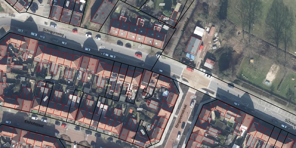 Het perceel waarop Schreursweg 42 staat heeft een oppervlakte van 1615 m². Dit is een zeer groot perceel. De perceeloppervlakte wordt geregistreerd door het Kadaster. Gedetailleerde informatie over de maten van dit perceel kunt u vinden in het rapport Kadastrale kaart met maatvoering van Schreursweg 42.