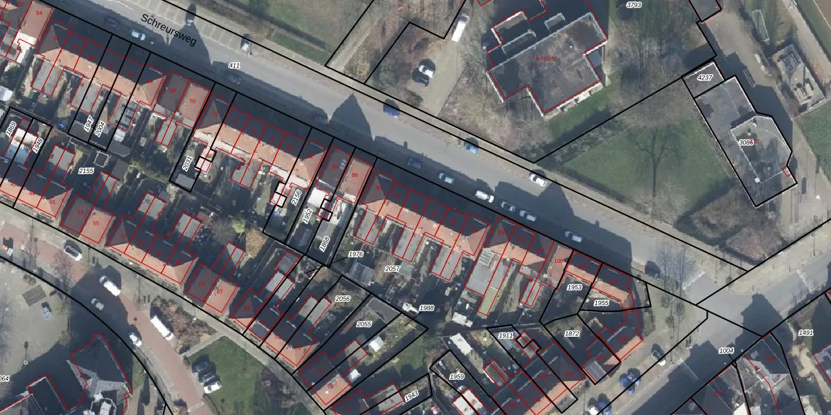 Het perceel waarop Schreursweg 92 staat heeft een oppervlakte van 3529 m². Dit is een zeer groot perceel. De perceeloppervlakte wordt geregistreerd door het Kadaster. Gedetailleerde informatie over de maten van dit perceel kunt u vinden in het rapport Kadastrale kaart met maatvoering van Schreursweg 92.