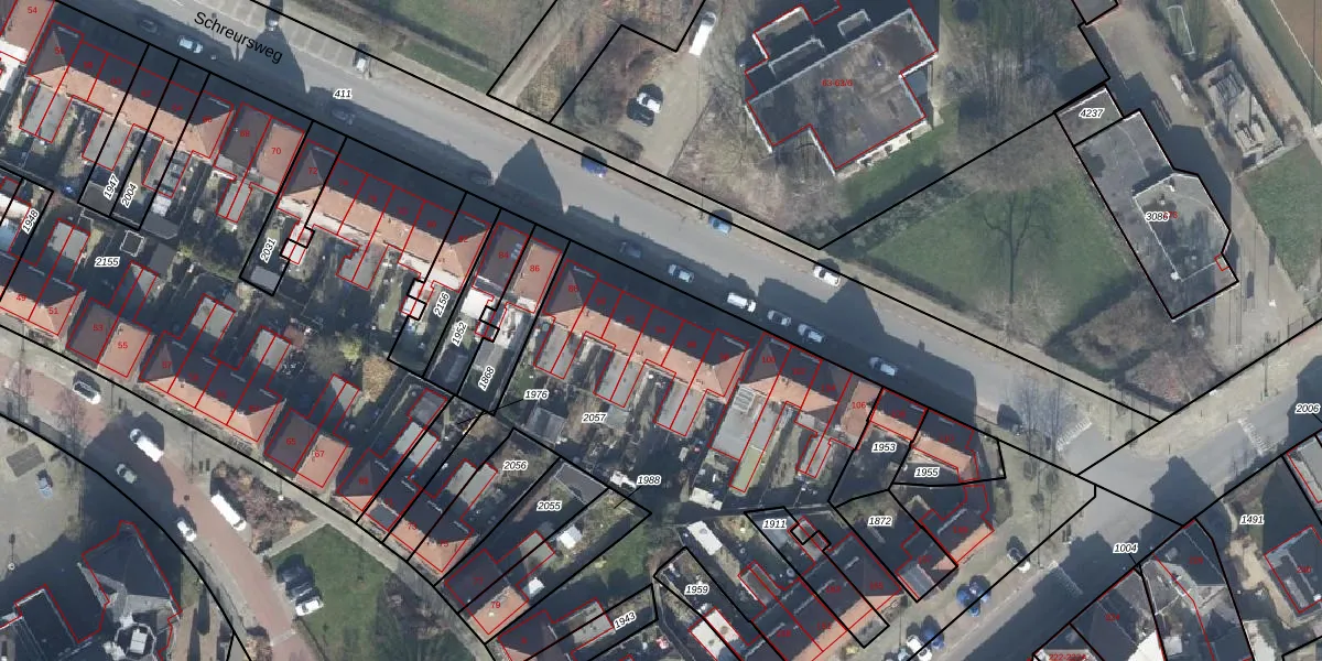 Het perceel waarop Schreursweg 94 staat heeft een oppervlakte van 3529 m². Dit is een zeer groot perceel. De perceeloppervlakte wordt geregistreerd door het Kadaster. Gedetailleerde informatie over de maten van dit perceel kunt u vinden in het rapport Kadastrale kaart met maatvoering van Schreursweg 94.