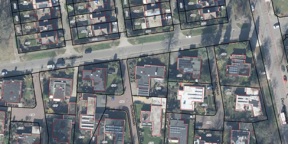 Schubertlaan 15 is gelegen op kadastraal perceel LNK00B4753. Deze kadastrale aanduiding is uniek en wordt gebruikt door het Kadaster om eigendomsrechten en andere zakelijke rechten vast te leggen. Het perceel maakt onderdeel uit van de kadastrale gemeente Lonneker.