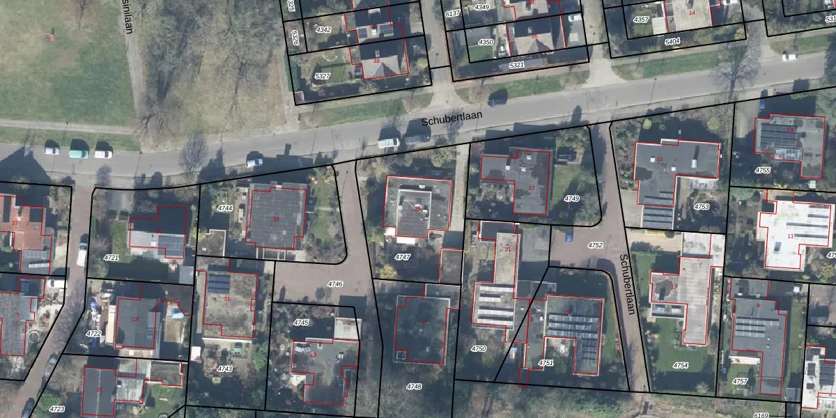 Schubertlaan 25 is gelegen op kadastraal perceel LNK00B4747. Deze kadastrale aanduiding is uniek en wordt gebruikt door het Kadaster om eigendomsrechten en andere zakelijke rechten vast te leggen. Het perceel maakt onderdeel uit van de kadastrale gemeente Lonneker.
