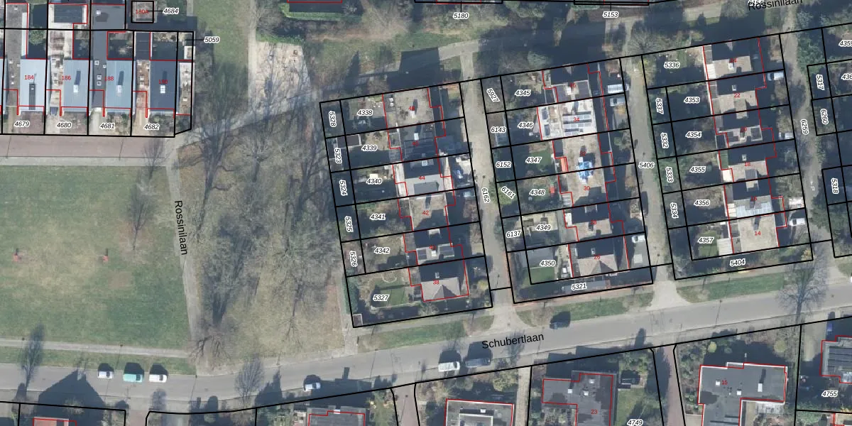 Schubertlaan 42 is gelegen op kadastraal perceel LNK00B4341. Deze kadastrale aanduiding is uniek en wordt gebruikt door het Kadaster om eigendomsrechten en andere zakelijke rechten vast te leggen. Het perceel maakt onderdeel uit van de kadastrale gemeente Lonneker.