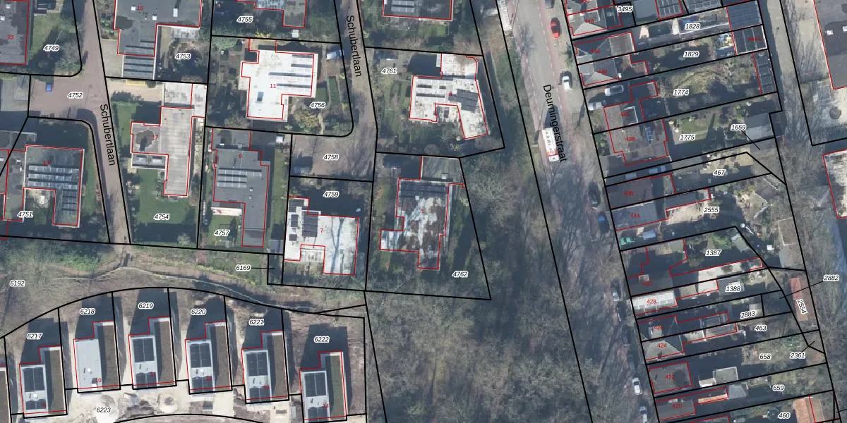 Schubertlaan 5 is gelegen op kadastraal perceel LNK00B4762. Deze kadastrale aanduiding is uniek en wordt gebruikt door het Kadaster om eigendomsrechten en andere zakelijke rechten vast te leggen. Het perceel maakt onderdeel uit van de kadastrale gemeente Lonneker.