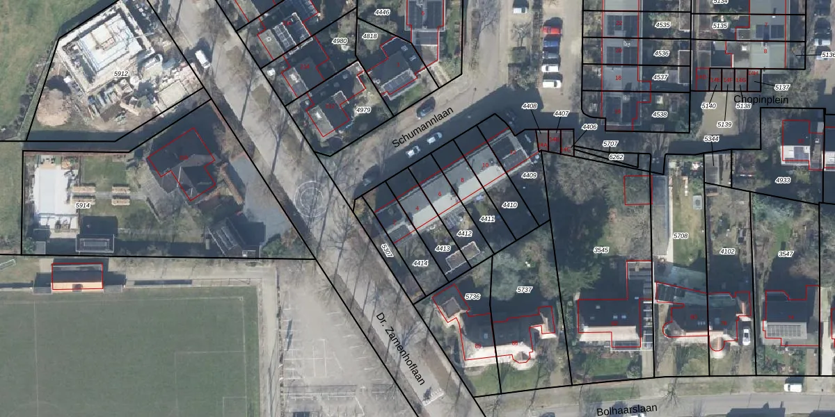 Gebruik de zoekbalk of klik op een perceel voor informatie over de adressen binnen dit perceel.