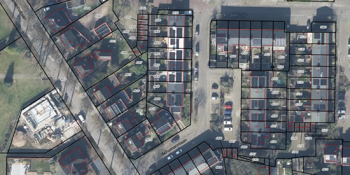 Schumannlaan 7 is gelegen op kadastraal perceel LNK00B4405. Deze kadastrale aanduiding is uniek en wordt gebruikt door het Kadaster om eigendomsrechten en andere zakelijke rechten vast te leggen. Het perceel maakt onderdeel uit van de kadastrale gemeente Lonneker.