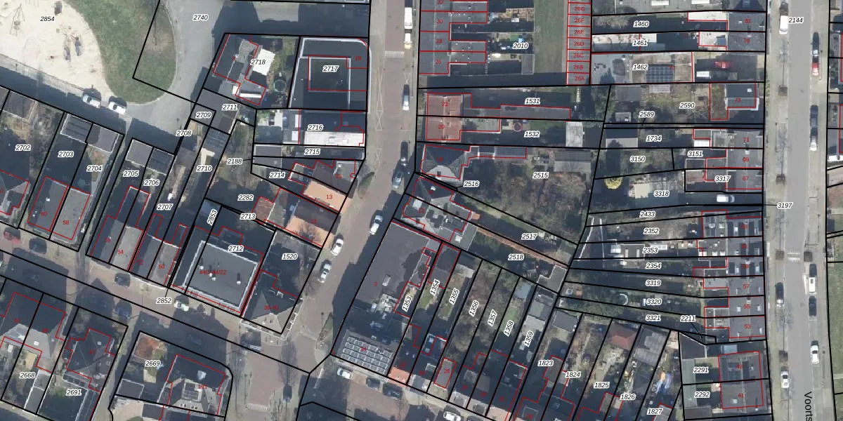 Gebruik de zoekbalk of klik op een perceel voor informatie over de adressen binnen dit perceel.