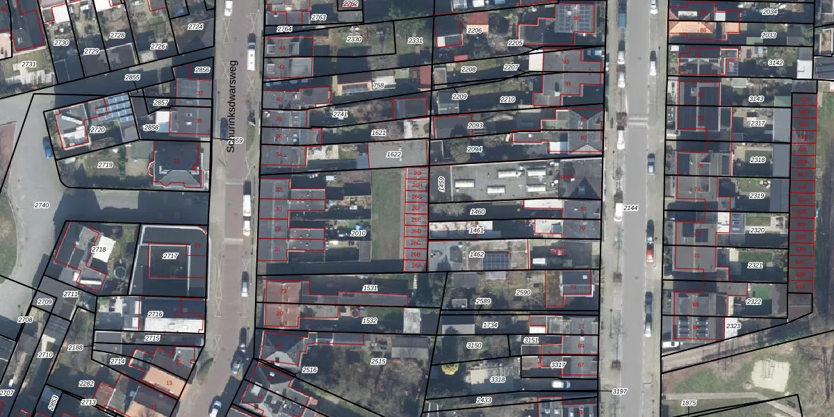 Het perceel waarop Schurinksdwarsweg 26-F staat heeft een oppervlakte van 1011 m². Dit is een zeer groot perceel. De perceeloppervlakte wordt geregistreerd door het Kadaster. Gedetailleerde informatie over de maten van dit perceel kunt u vinden in het rapport Kadastrale kaart met maatvoering van Schurinksdwarsweg 26-F.
