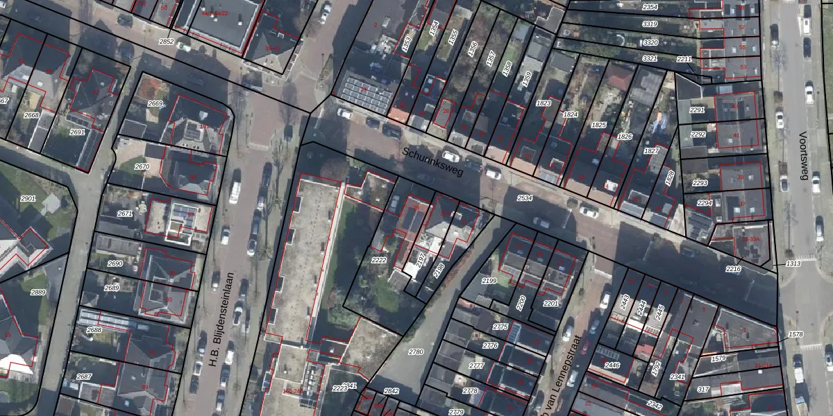 Gebruik de zoekbalk of klik op een perceel voor informatie over de adressen binnen dit perceel.