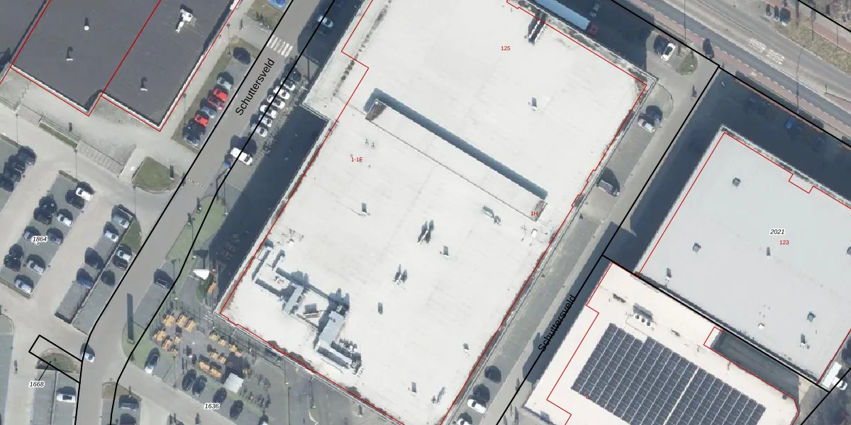 Het perceel waarop Schuttersveld 1-2 staat heeft een oppervlakte van 1,1 ha. Dit is een zeer groot perceel. De perceeloppervlakte wordt geregistreerd door het Kadaster. Gedetailleerde informatie over de maten van dit perceel kunt u vinden in het rapport Kadastrale kaart met maatvoering van Schuttersveld 1-2.