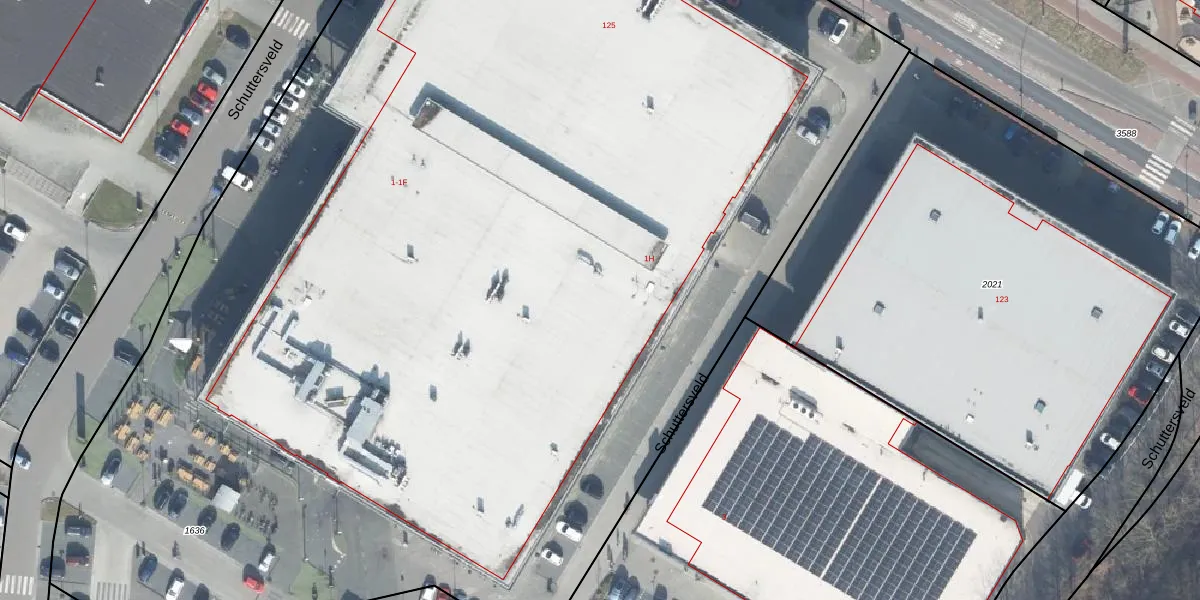 Het perceel waarop Schuttersveld 1-H staat heeft een oppervlakte van 1,1 ha. Dit is een zeer groot perceel. De perceeloppervlakte wordt geregistreerd door het Kadaster. Gedetailleerde informatie over de maten van dit perceel kunt u vinden in het rapport Kadastrale kaart met maatvoering van Schuttersveld 1-H.