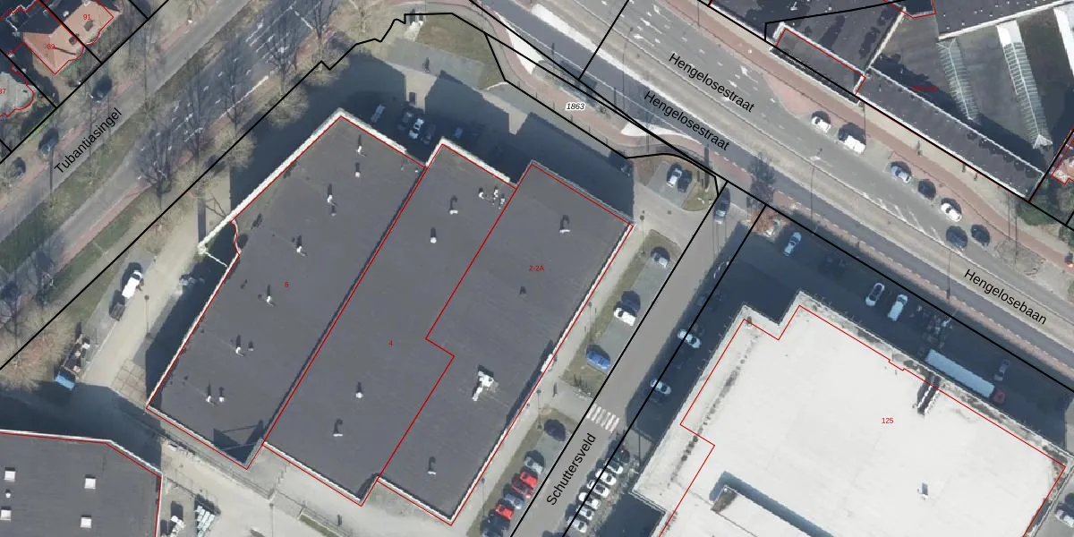 Schuttersveld 2 is gelegen op kadastraal perceel ESD00I1864. Deze kadastrale aanduiding is uniek en wordt gebruikt door het Kadaster om eigendomsrechten en andere zakelijke rechten vast te leggen. Het perceel maakt onderdeel uit van de kadastrale gemeente Enschede.