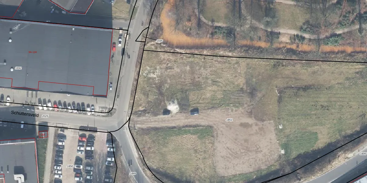 Het perceel waarop Schuttersveld 55 staat heeft een oppervlakte van 9047 m². Dit is een zeer groot perceel. De perceeloppervlakte wordt geregistreerd door het Kadaster. Gedetailleerde informatie over de maten van dit perceel kunt u vinden in het rapport Kadastrale kaart met maatvoering van Schuttersveld 55.