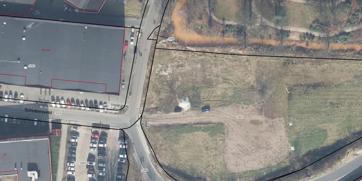 Het perceel waarop Schuttersveld 57 staat heeft een oppervlakte van 9047 m². Dit is een zeer groot perceel. De perceeloppervlakte wordt geregistreerd door het Kadaster. Gedetailleerde informatie over de maten van dit perceel kunt u vinden in het rapport Kadastrale kaart met maatvoering van Schuttersveld 57.