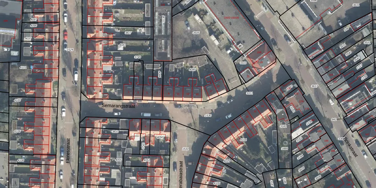 Het perceel waarop Semarangstraat 13 staat heeft een oppervlakte van 695 m². Dit is een groot perceel. De perceeloppervlakte wordt geregistreerd door het Kadaster. Gedetailleerde informatie over de maten van dit perceel kunt u vinden in het rapport Kadastrale kaart met maatvoering van Semarangstraat 13.