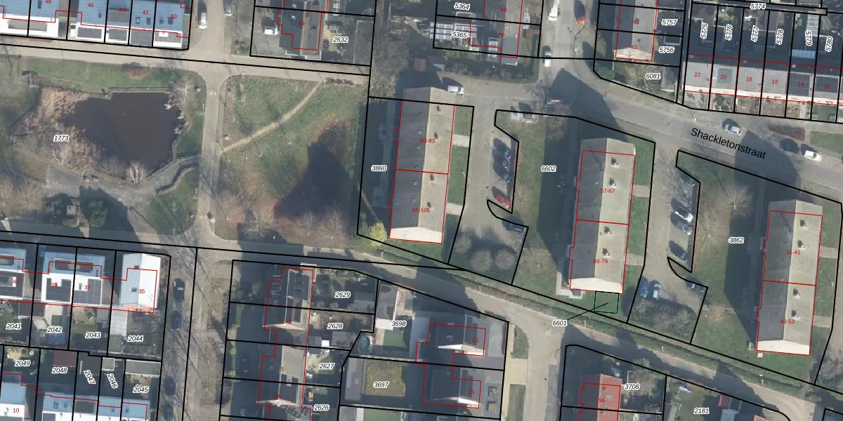 Het perceel waarop Shackletonstraat 105 staat heeft een oppervlakte van 860 m². Dit is een groot perceel. De perceeloppervlakte wordt geregistreerd door het Kadaster. Gedetailleerde informatie over de maten van dit perceel kunt u vinden in het rapport Kadastrale kaart met maatvoering van Shackletonstraat 105.
