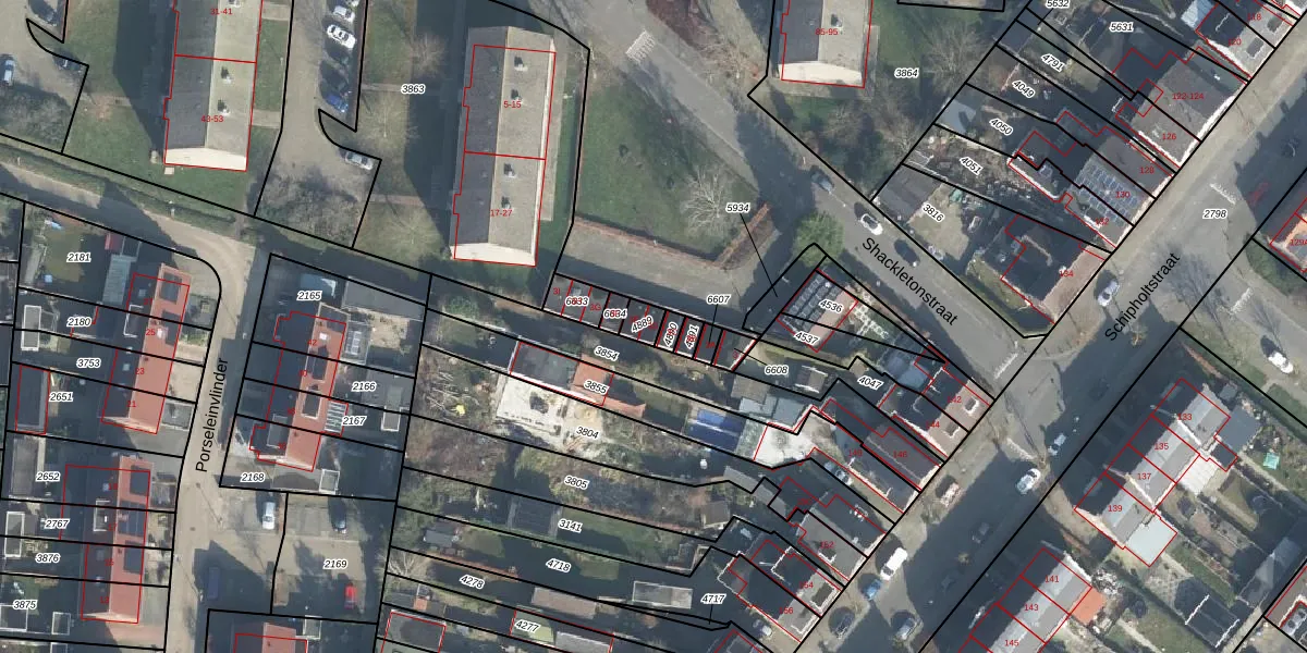 Het perceel waarop Shackletonstraat 3-D staat heeft een oppervlakte van 36 m². Dit is een klein perceel. De perceeloppervlakte wordt geregistreerd door het Kadaster. Gedetailleerde informatie over de maten van dit perceel kunt u vinden in het rapport Kadastrale kaart met maatvoering van Shackletonstraat 3-D.