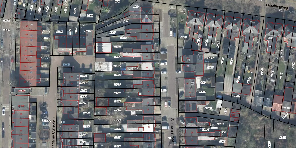Het perceel waarop Siemensstraat 33 staat heeft een oppervlakte van 265 m². Dit is een middelgroot perceel. De perceeloppervlakte wordt geregistreerd door het Kadaster. Gedetailleerde informatie over de maten van dit perceel kunt u vinden in het rapport Kadastrale kaart met maatvoering van Siemensstraat 33.