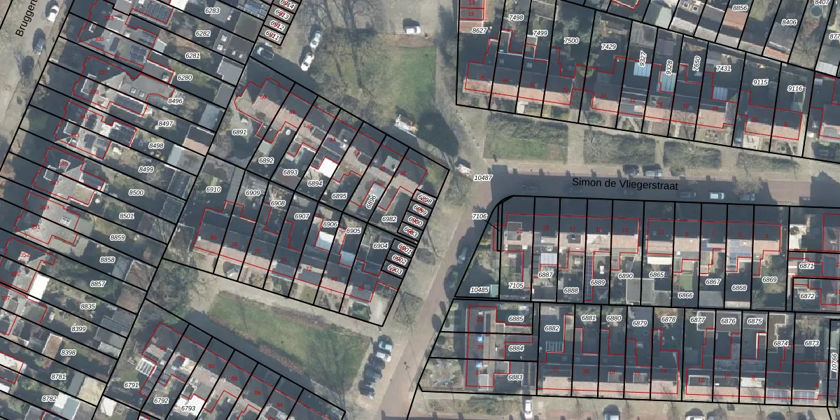 Simon de Vliegerstraat 54 is gelegen op kadastraal perceel LNK00N6899. Deze kadastrale aanduiding is uniek en wordt gebruikt door het Kadaster om eigendomsrechten en andere zakelijke rechten vast te leggen. Het perceel maakt onderdeel uit van de kadastrale gemeente Lonneker.