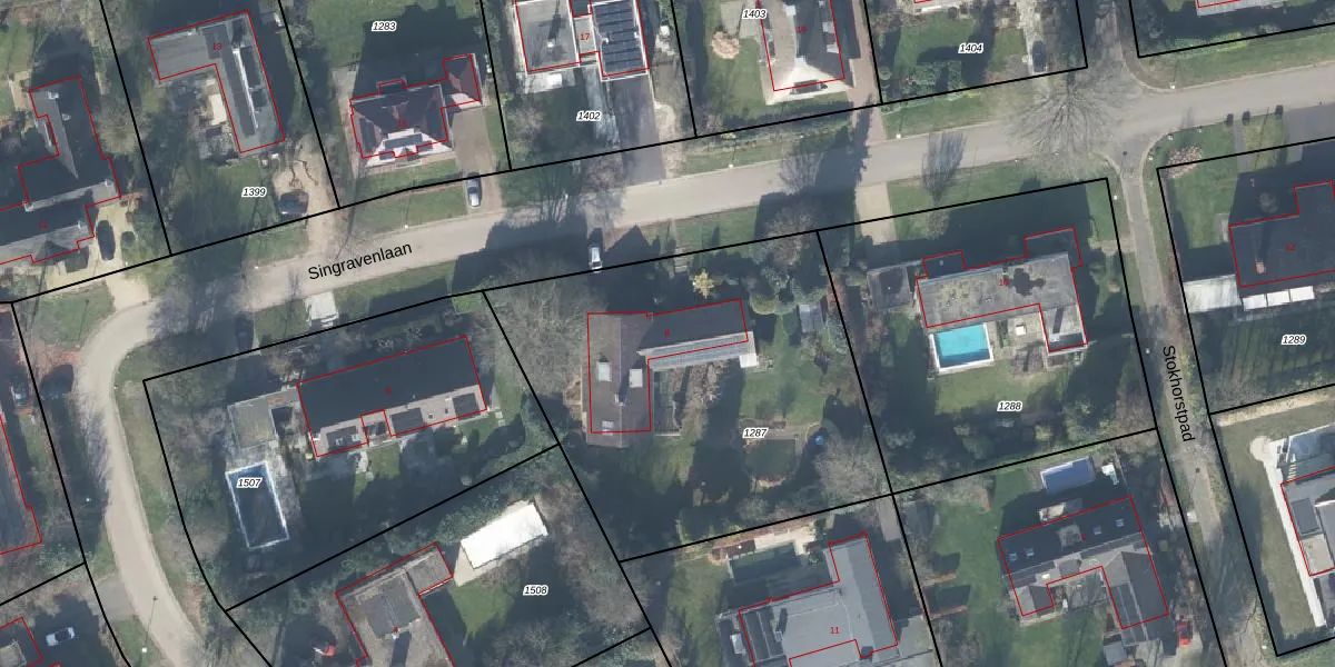Het perceel waarop Singravenlaan 8 staat heeft een oppervlakte van 1975 m². Dit is een zeer groot perceel. De perceeloppervlakte wordt geregistreerd door het Kadaster. Gedetailleerde informatie over de maten van dit perceel kunt u vinden in het rapport Kadastrale kaart met maatvoering van Singravenlaan 8.