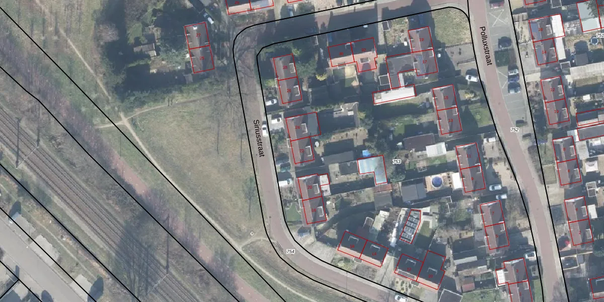 Het perceel waarop Siriusstraat 22 staat heeft een oppervlakte van 6830 m². Dit is een zeer groot perceel. De perceeloppervlakte wordt geregistreerd door het Kadaster. Gedetailleerde informatie over de maten van dit perceel kunt u vinden in het rapport Kadastrale kaart met maatvoering van Siriusstraat 22.